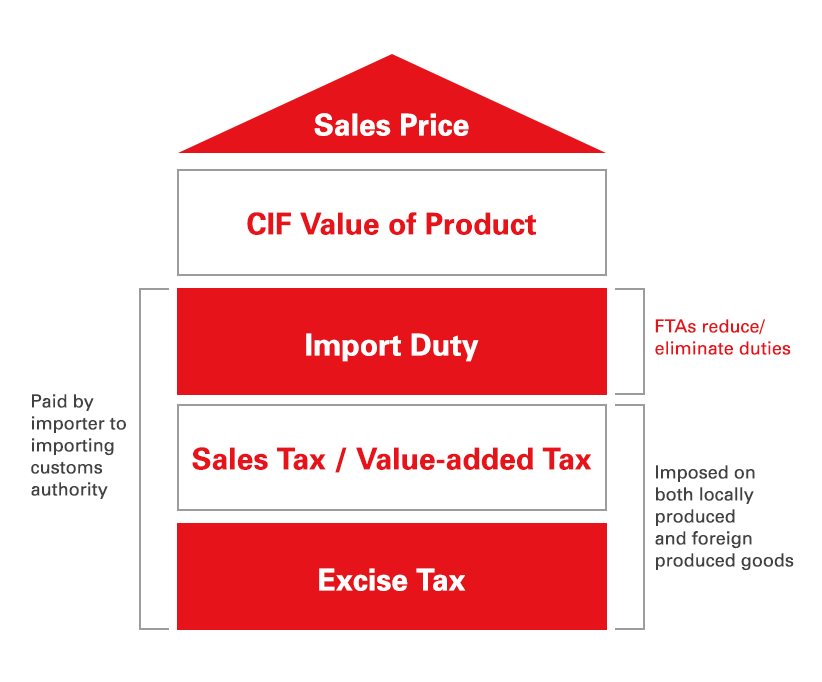 In a typical pricing model, FTAs can potentially reduce one of the cost components – import duties.