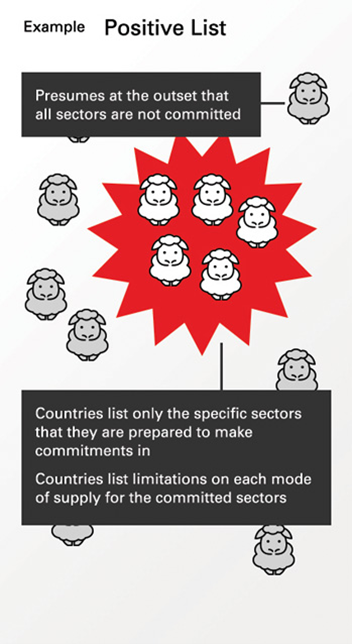 | Annex II: Reservations for future flexibility | FTA partner retains full discretion and flexibility to implement future trade restrictive measures for a particular service sector or government activity |